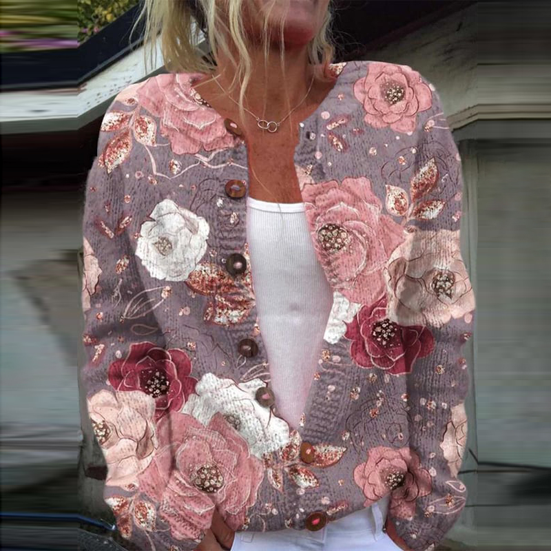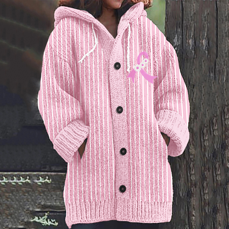 Women's Breast Cancer Flower Print Knitted Cardigan