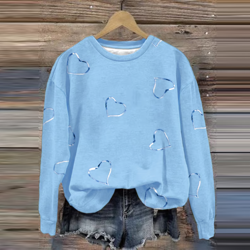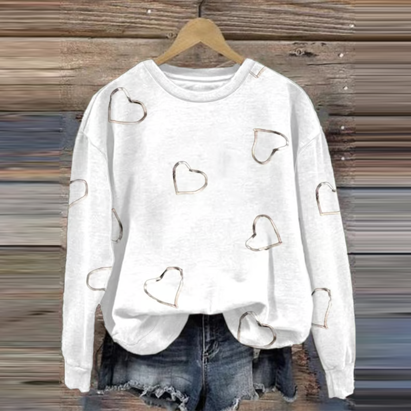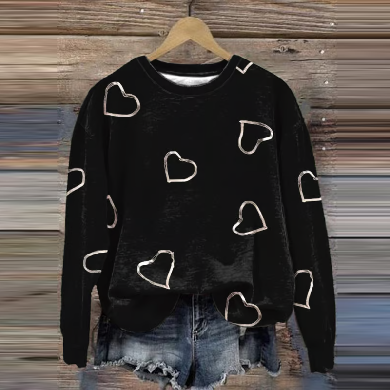 Women's Breast Cancer Awareness Heart Ribbon Print Sweatshirt