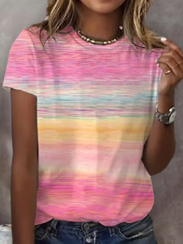 Women'S Striped Breast Cancer Awareness Print Casual T-Shirt