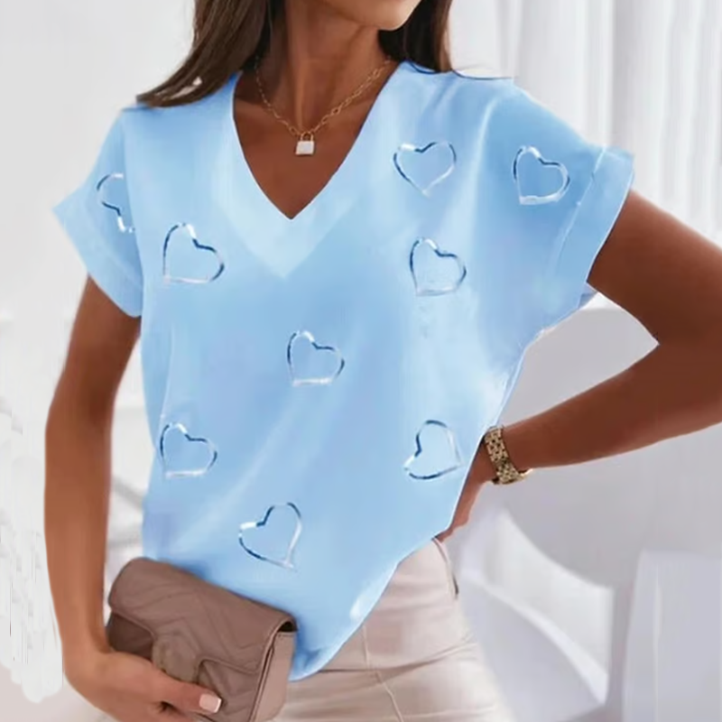 Classic Breast Cancer Awareness Heart Painting V-Neck T-Shirt