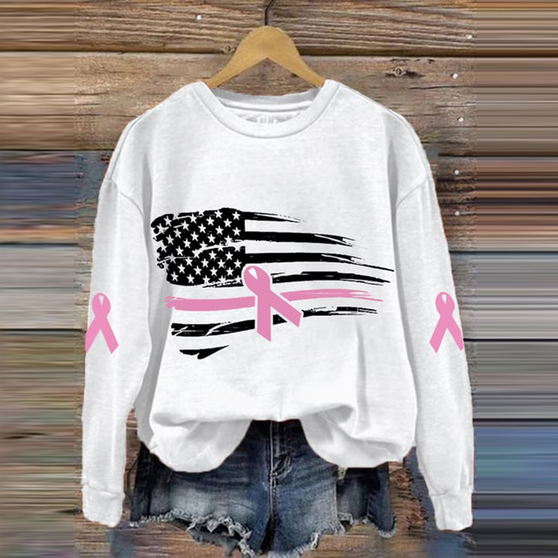 Women's Pink Ribbon Breast Cancer Awareness American Flag Sweatshirt