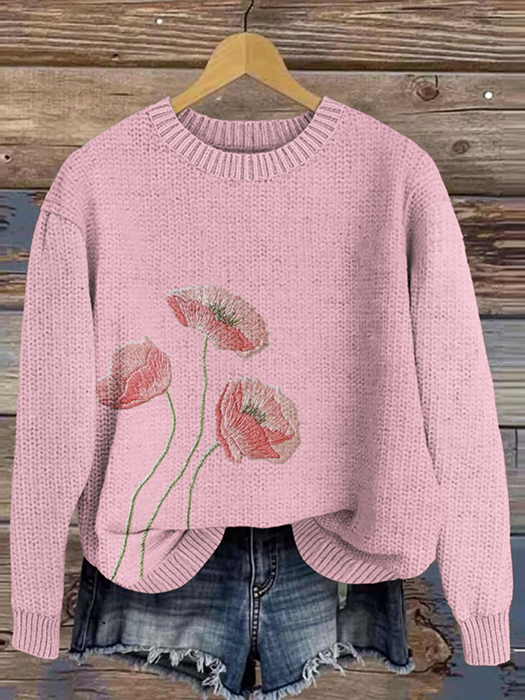 Vintage Breast Cancer Floral Embroidery Cozy Knit Sweater