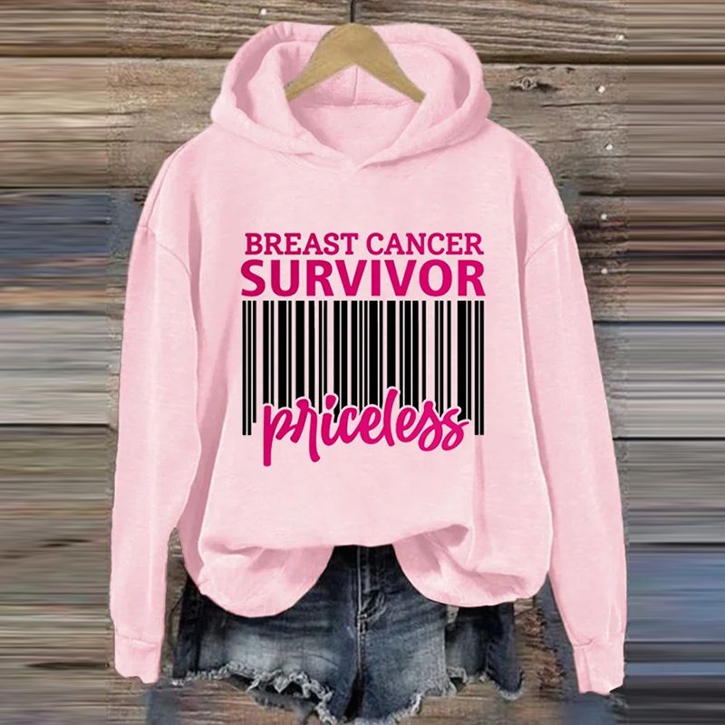 Women's Breast Cancer Survivor Priceless Printed Casual Hoodie