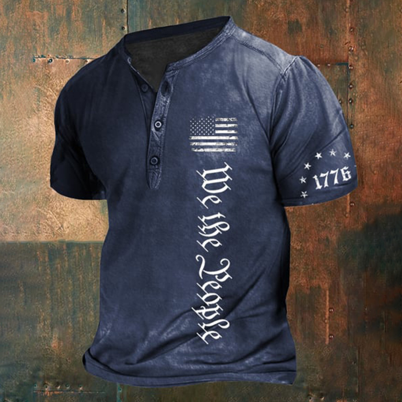 Men's American Us Flag Patriotic God Print Pocket Button Up Shirt