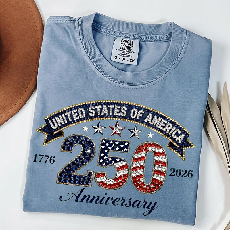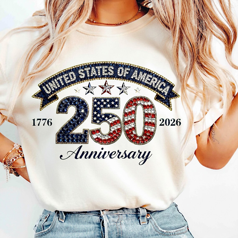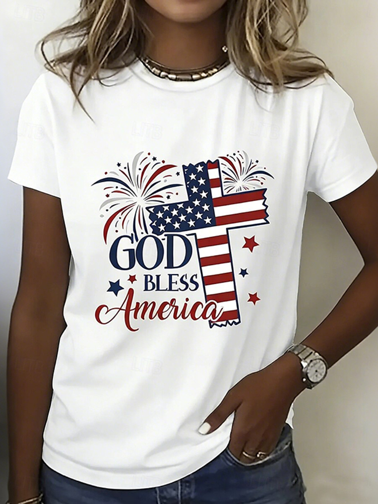 Women's American 250th Anniversary Patriotic Print Round Neck T Shirt
