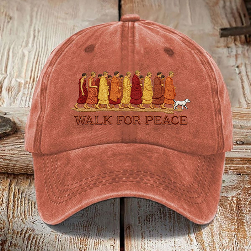 Unisex Vintage Walk For Peace Monks With Aloka Dog Pattern Baseball Cap