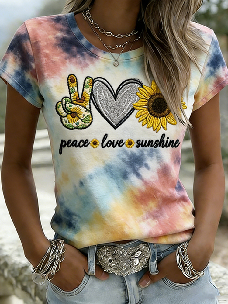 Peace And Love Sunflower Print Tie-dye T-shirt