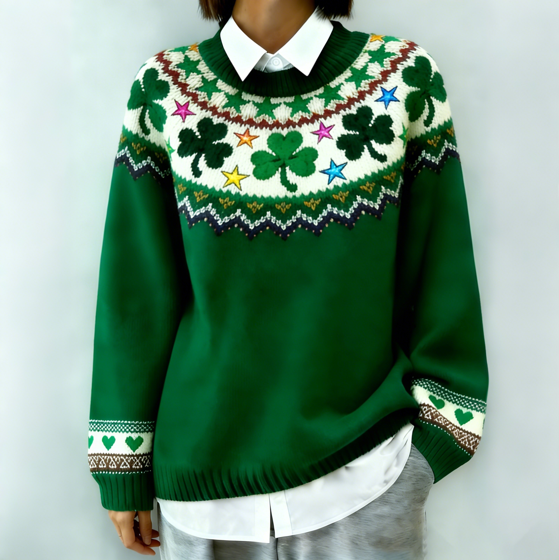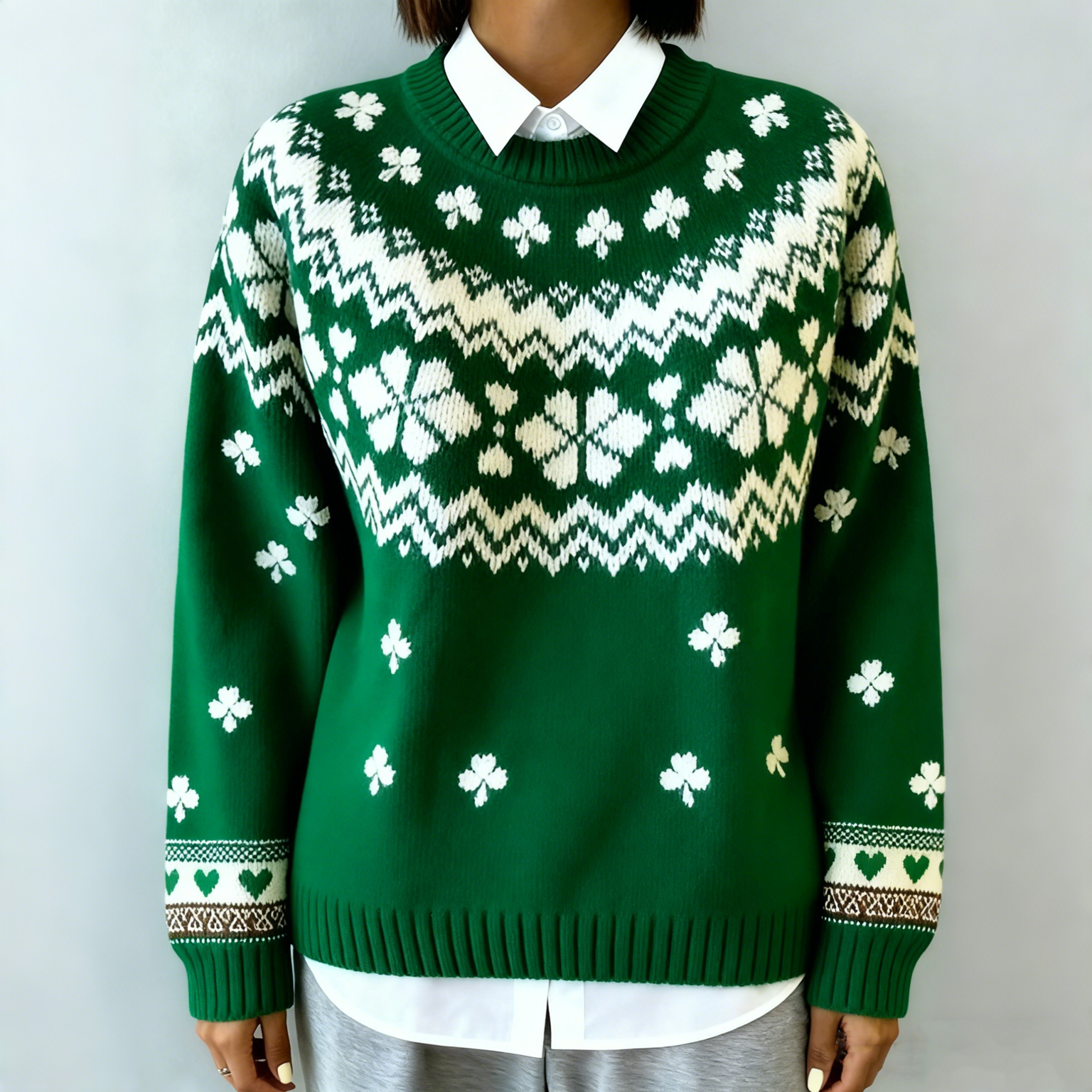 Women's St. Patrick's Day Clover Pattern Cozy Knit Sweater