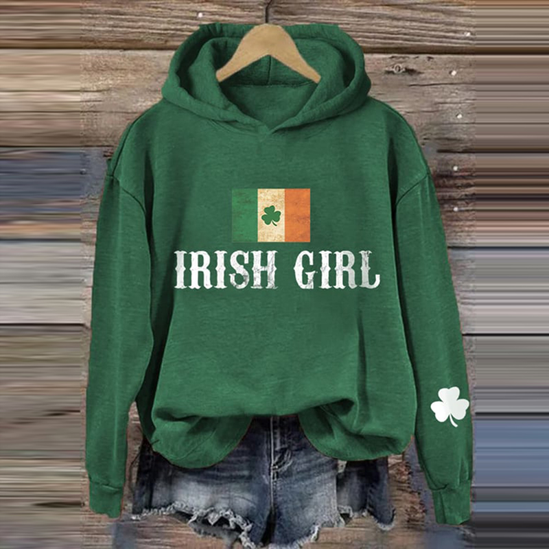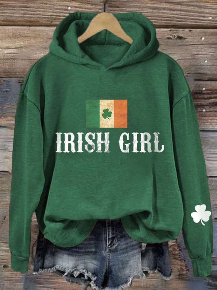 Women's St. Patrick's Day Irish Girl Print Hoodie
