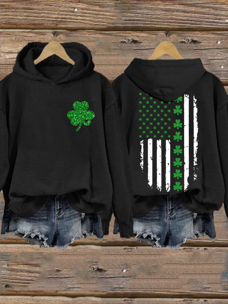 St. Patrick's Day Flag Shamrock Print Casual Hoodie