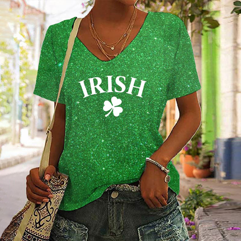 Lucky Shamrock Shenanigans Coordinator Print V-Neck Casual T-Shirt