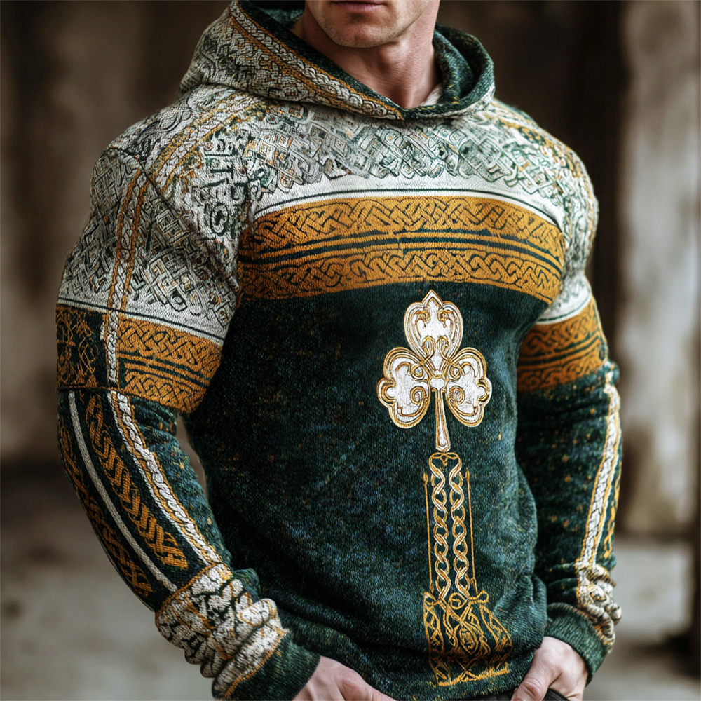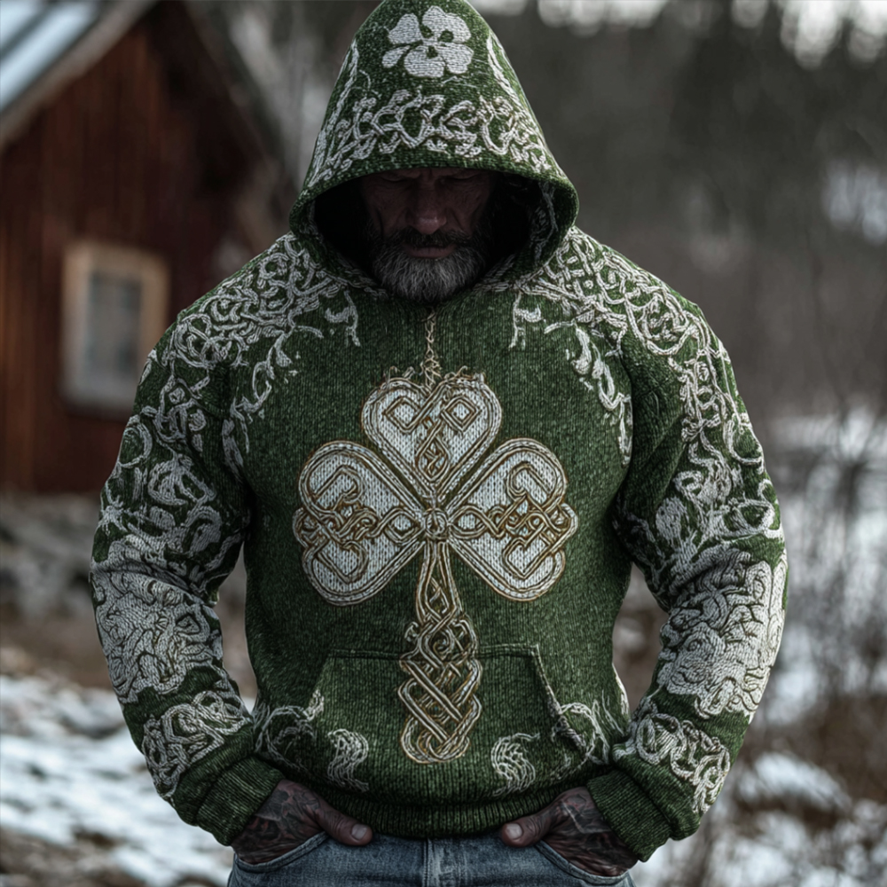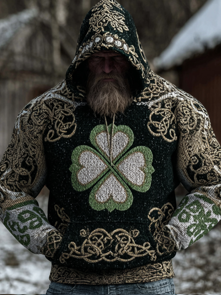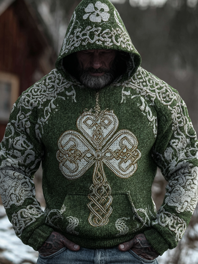 Men's St. Patrick's Day Celtic Knot Shamrock Printed Knit Hoodie Sweater