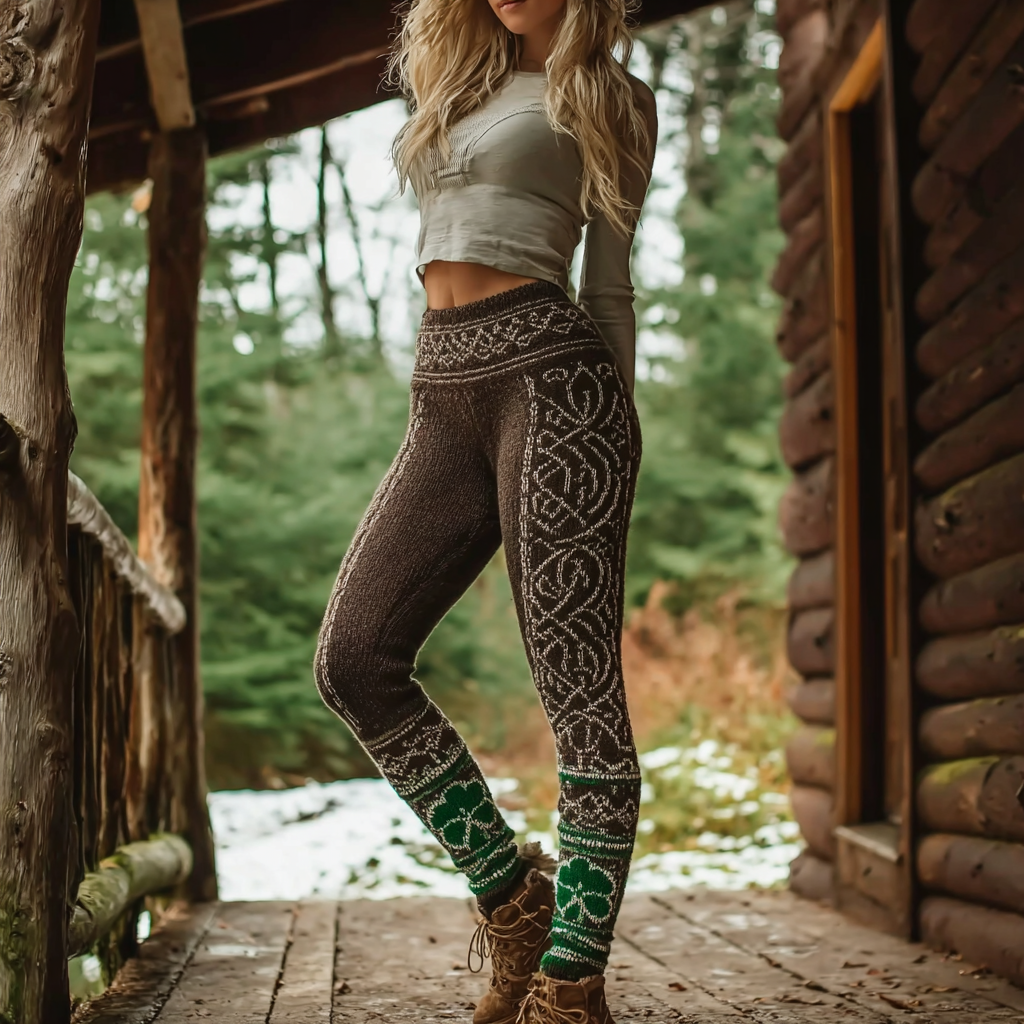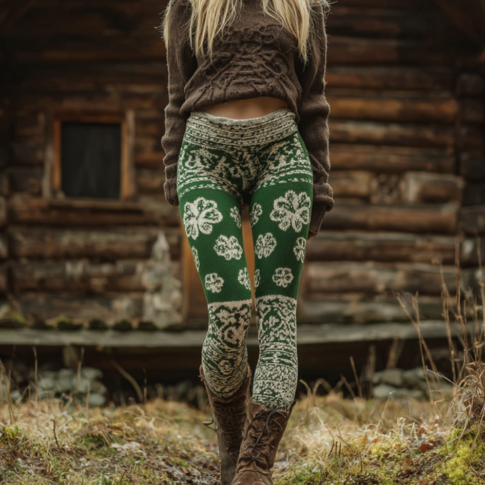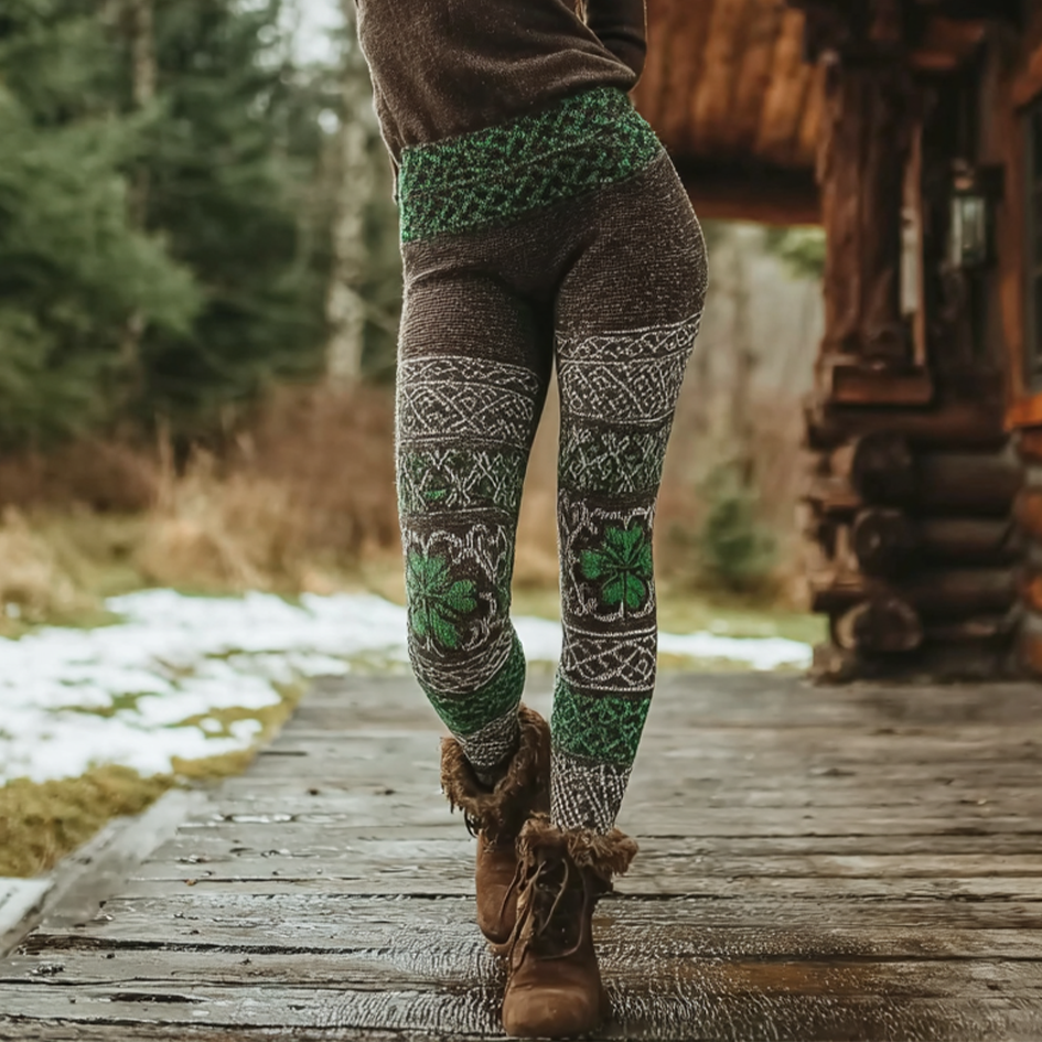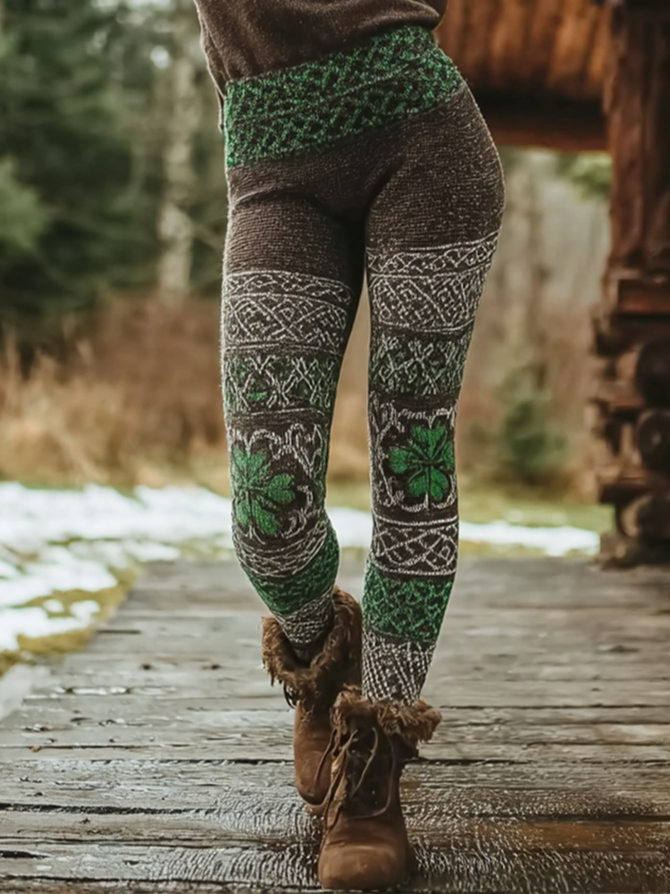 Retro Irish Style Clover Pattern Women's Tight-fitting Leggings