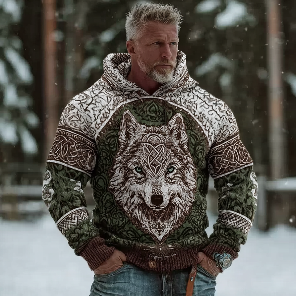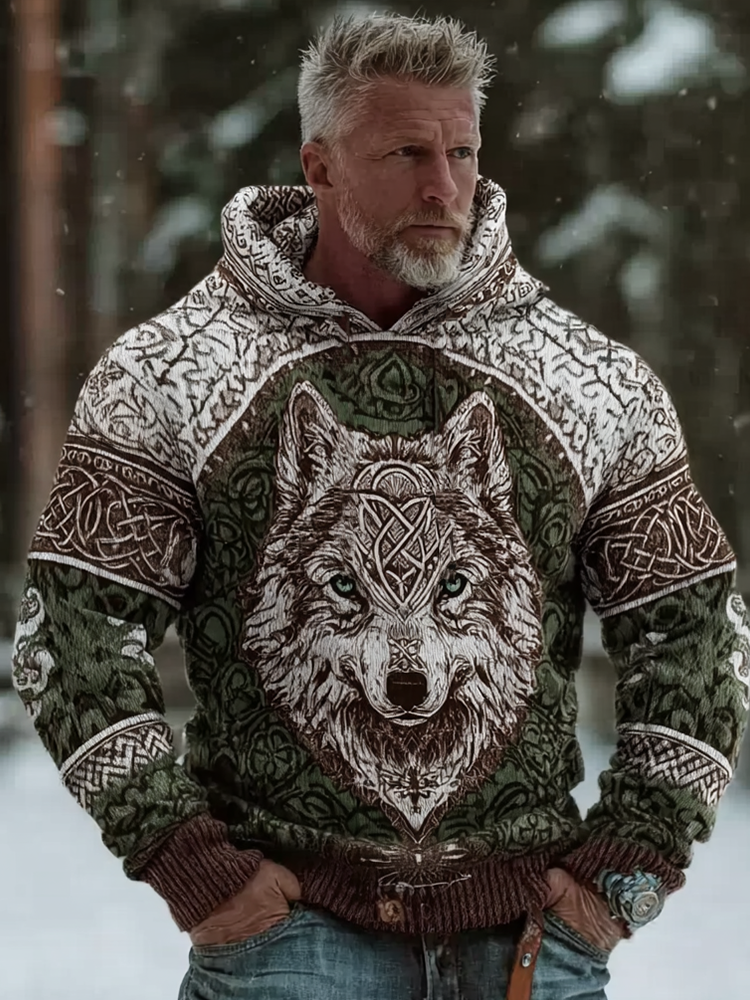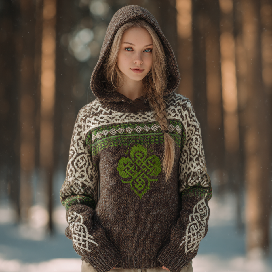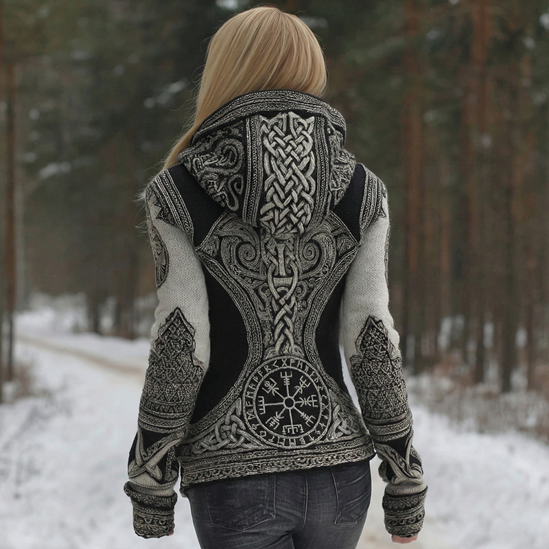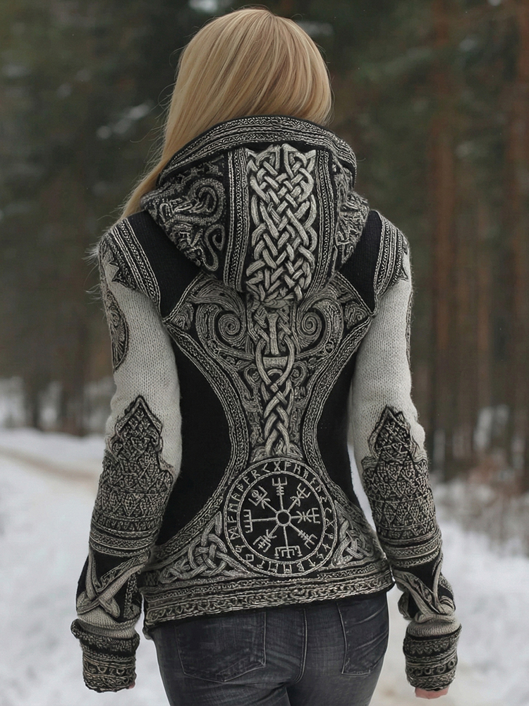 Women's Vintage Viking Art Pattern Knit Hooded Sweater