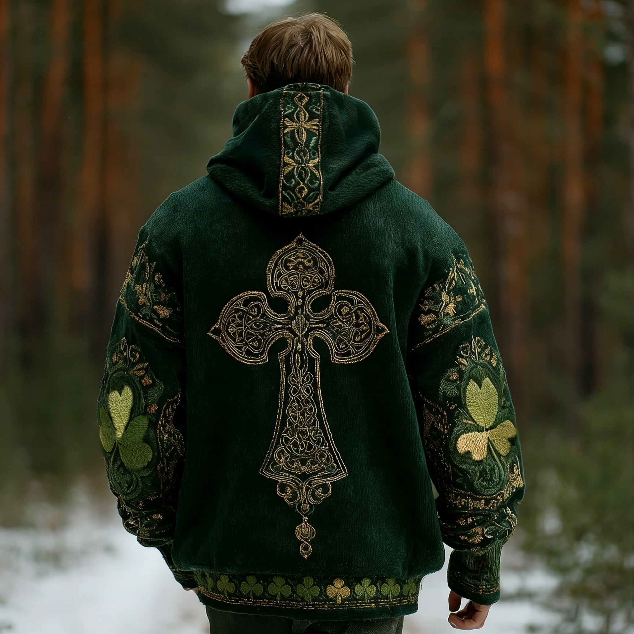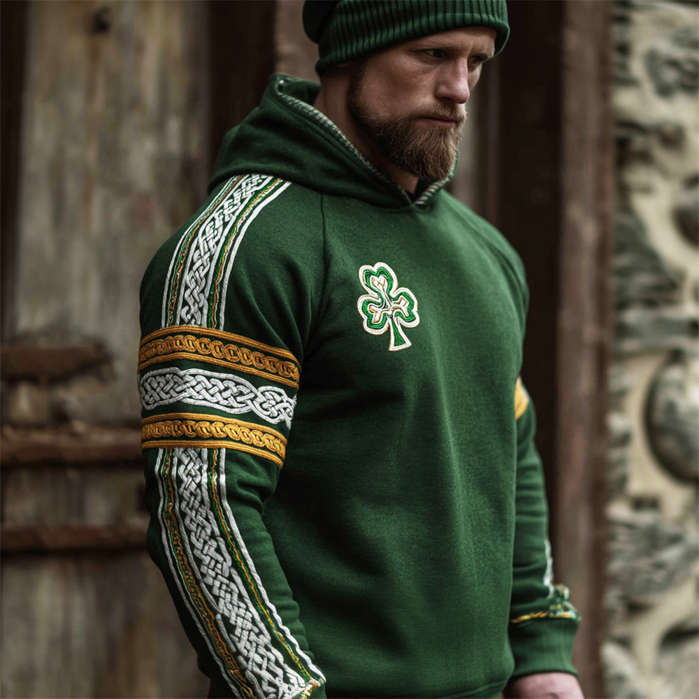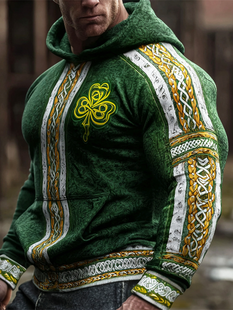 Men's Celtic Shamrock Pattern Hooded Sweatshirt