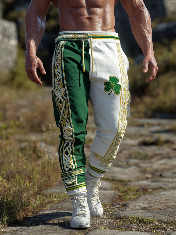 Celtic Knot & Shamrock Pattern Color Clash Men's Sweatpants