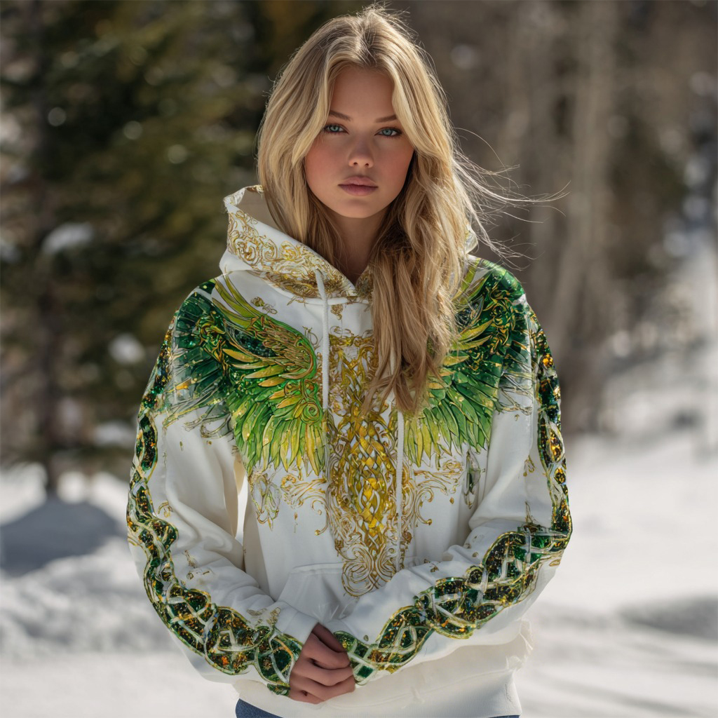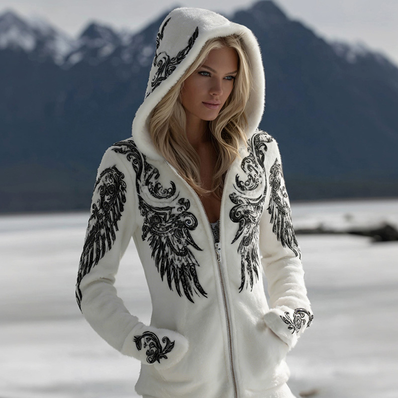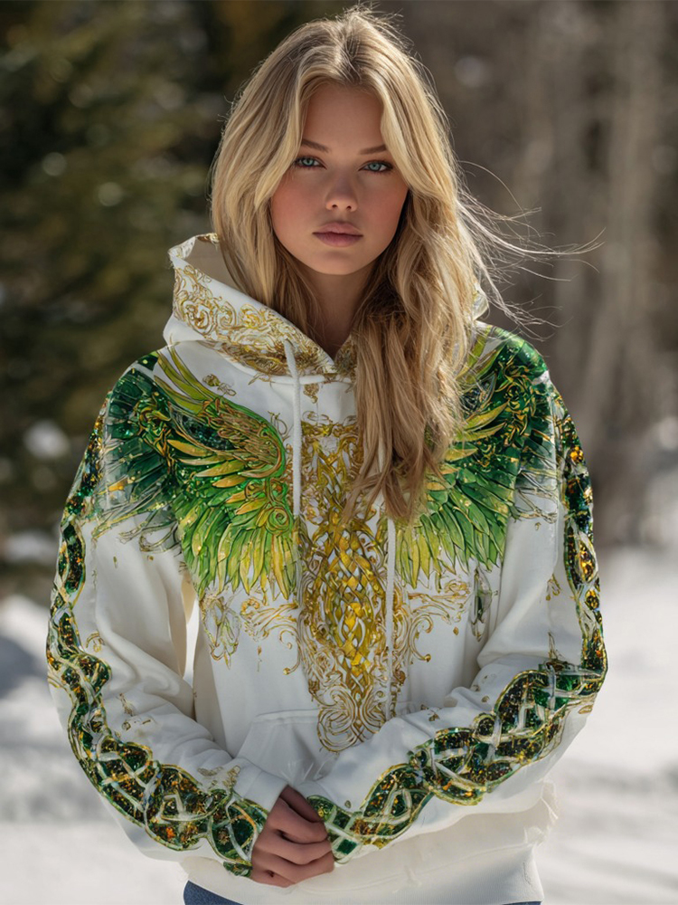 Women's Celtic Wing Pattern Flannel Comfort Hooded Jacket