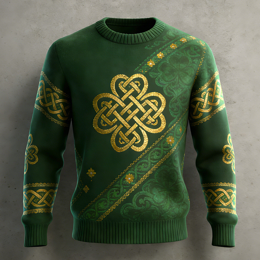 Men's St. Patrick's Day Shamrock Celtic Knot Pattern Comfortable Crew Neck Sweatshirt