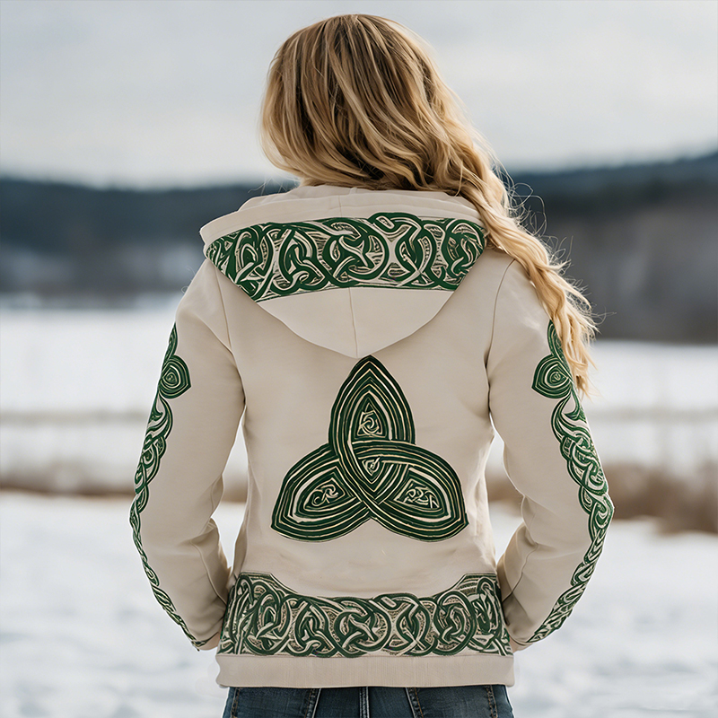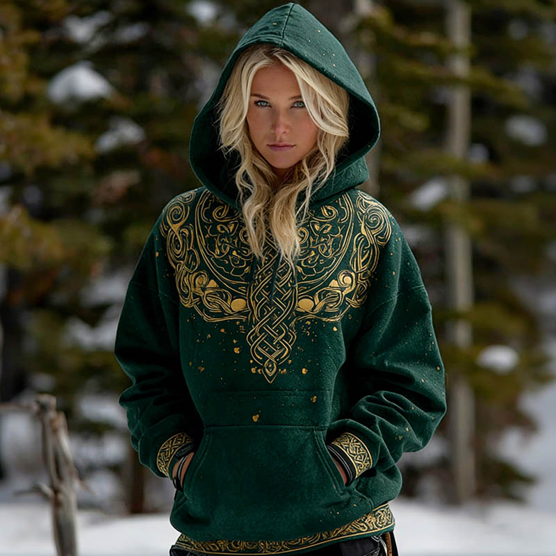 Women's Retro Celtic Triquetra Pattern Casual Hoodie