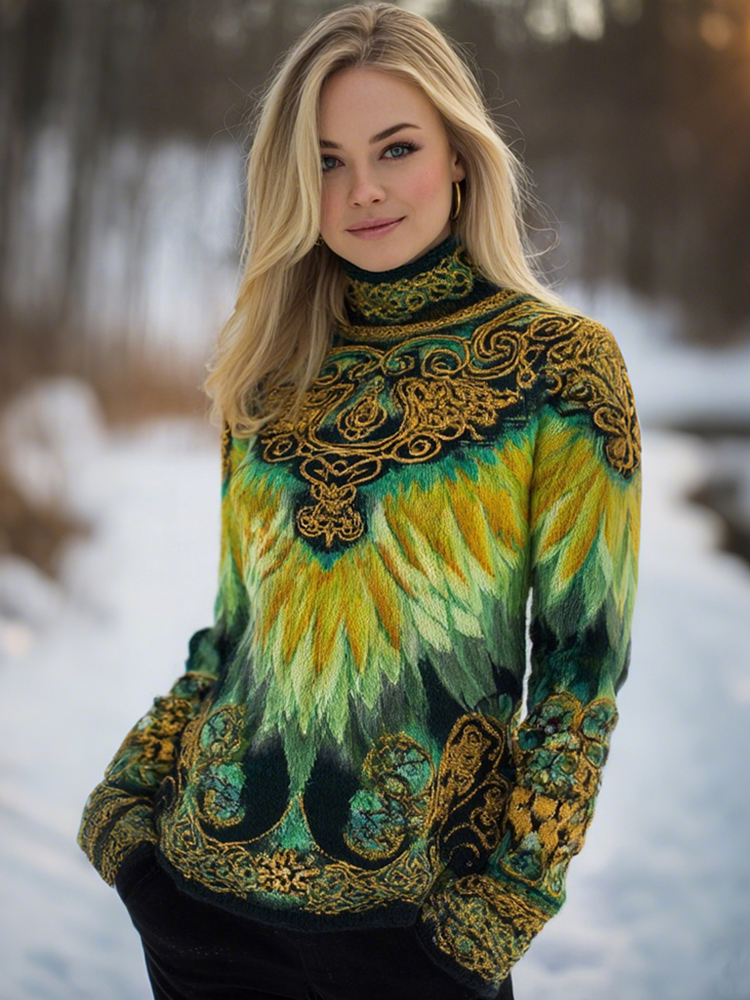 Irish Celtic Knot Jacquard Women's Turtleneck Sweater