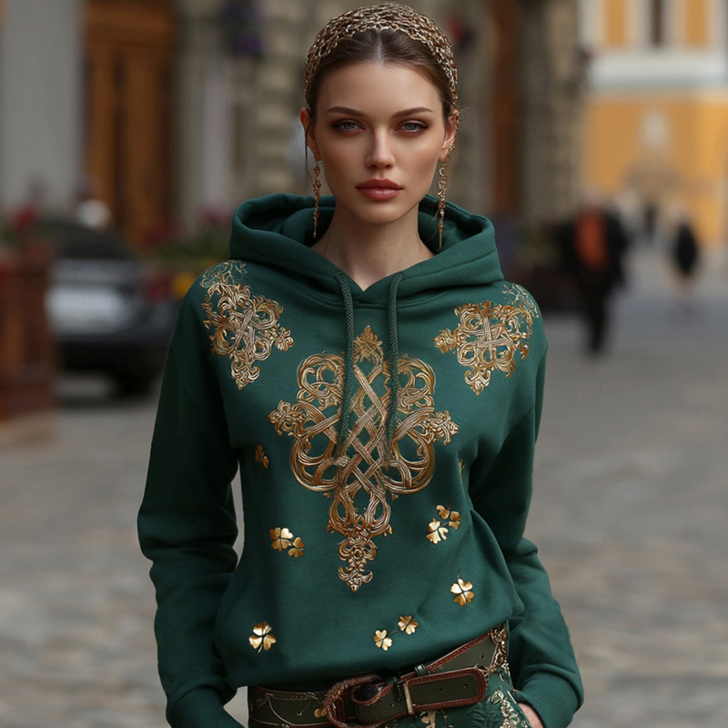 Women's St. Patrick's Day Celtic Knot Pattern Comfortable Hooded Sweatshirt