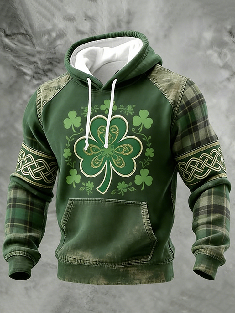 Men's Casual St. Patrick's Day Celtic Knot Shamrock Print Hoodie