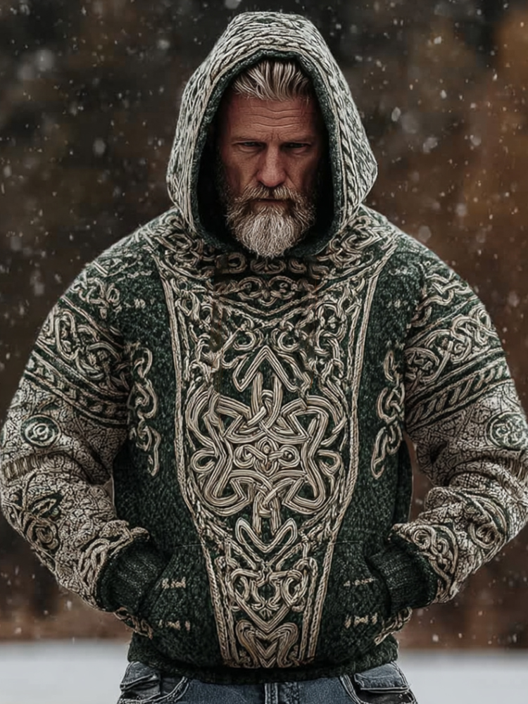 Celtic Shamrock Pattern Vintage Men's Hooded Sweatshirt