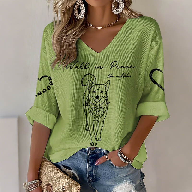 Retro Walk In Peace Like Aloka Dog Print V-neck T-shirt