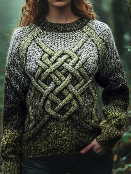 Vingate Gradient Celtic Knot Chunky Contrast Color Cozy Sweater