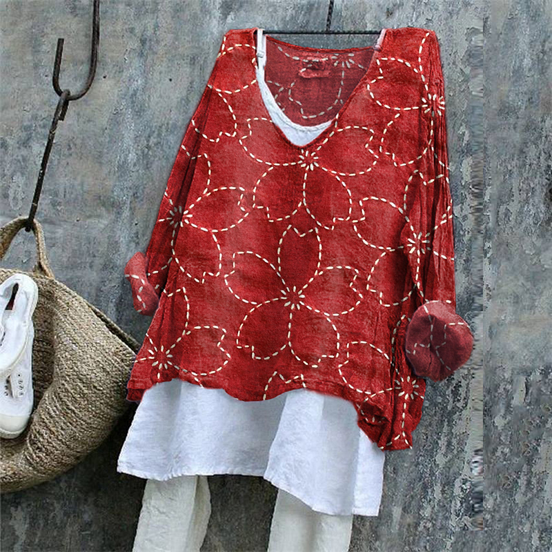 Women's Japanese Cherry Blossom Embroidered Linen Blend Shirt