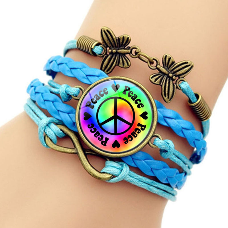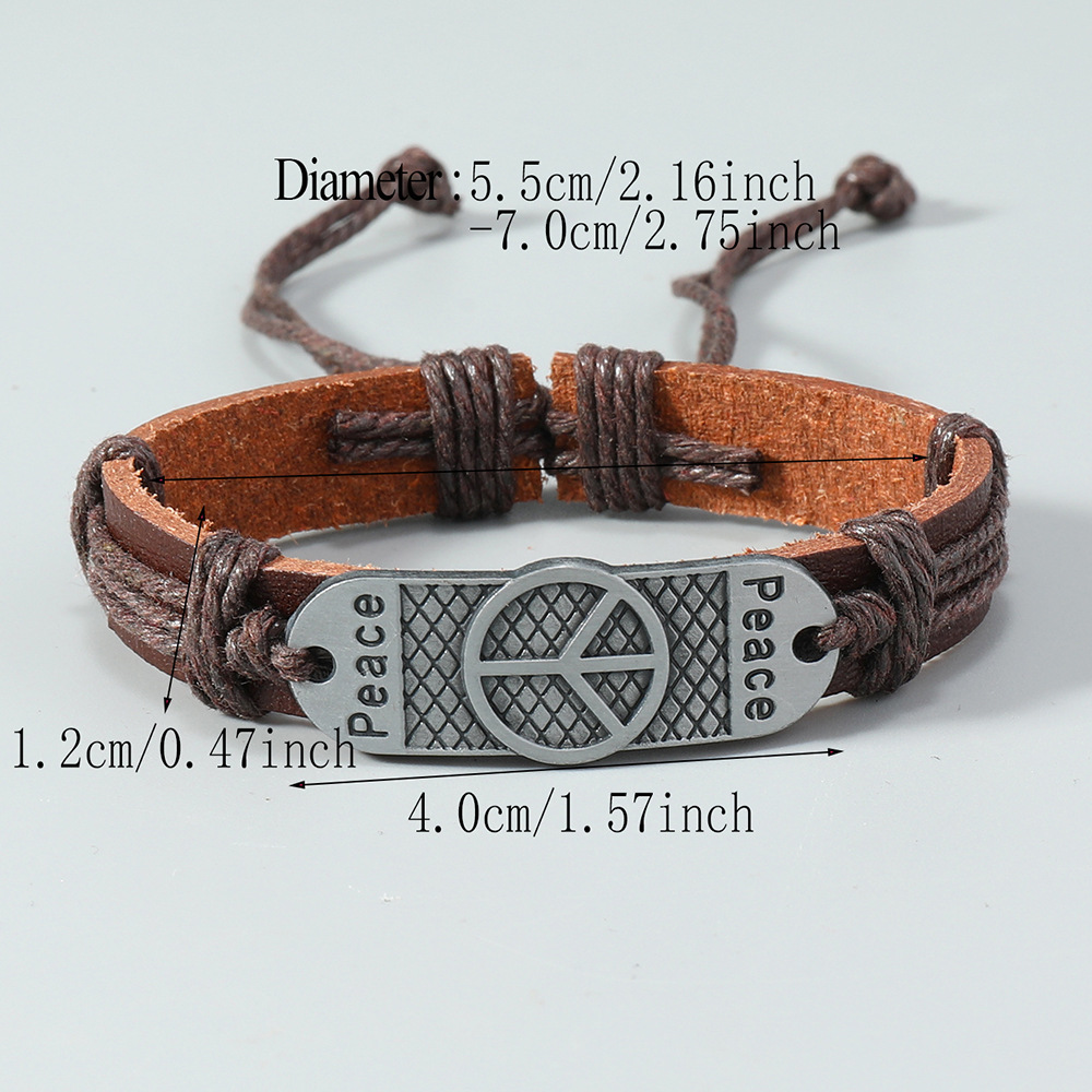 Handmade Beaded Cowhide Bracelet Alloy Peace Bracelet
