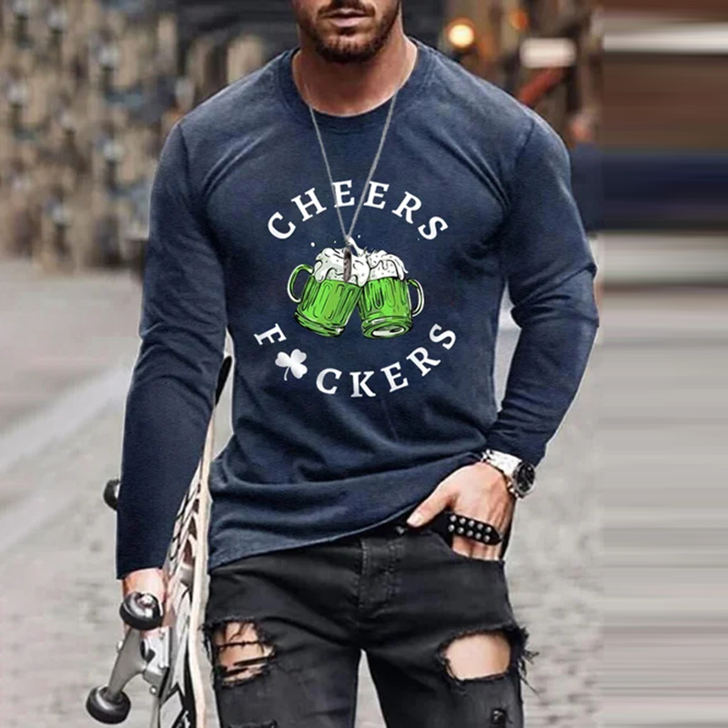 Men's Funny St Patrick's Day Cheers F*ckers Green Beer Shamrock Print Waffle Sweatshirt