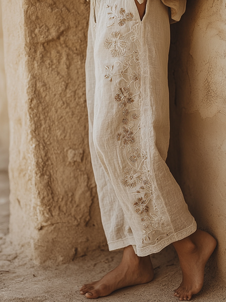 Retro Loose Bohemia Floral Ethnic Summer Linen Embroidered Print Patchwork V Neck Camisole