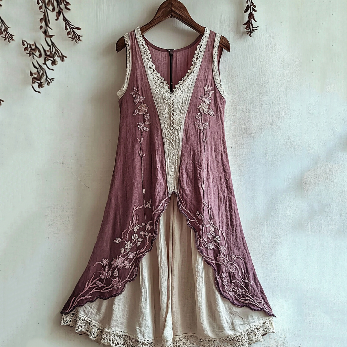 Spring Girl Green Pastoral Style Vintage Bohe Floral Embroidery Art Linen Tank Dress