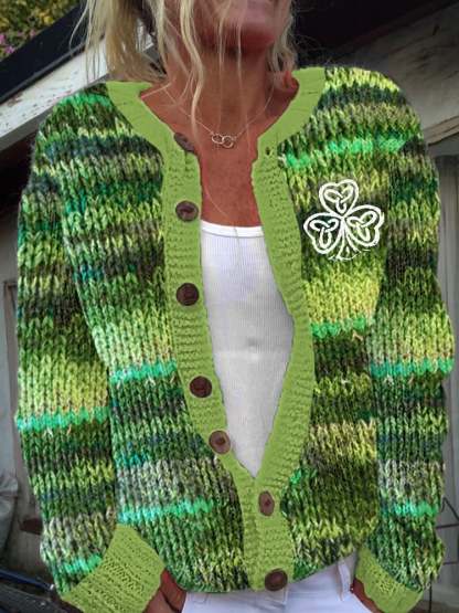 Women's St. Patrick's Day Shamrock Knit Cardigan Sweater