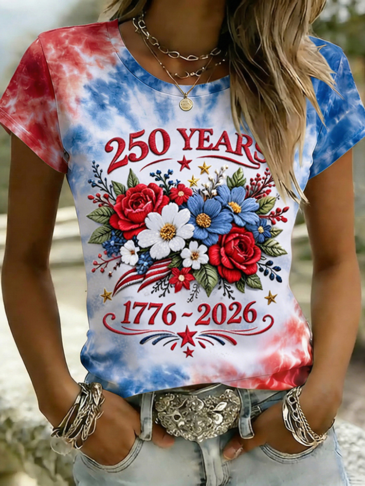 Women's Us 250th Anniversary In Flower Art Casual T Shirt