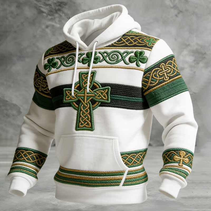 Women's Vintage Floral Embroidery Pattern Warm V-neck Hoodie