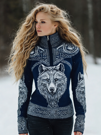 Women's Vintage Viking Wolf Style Celtic Art Knitted Sweater