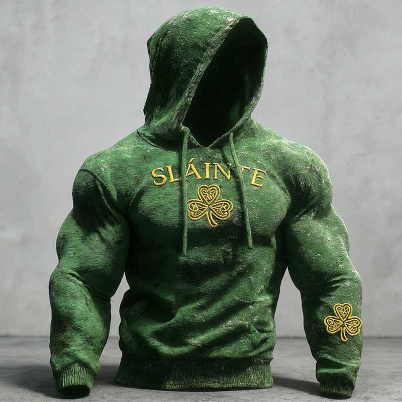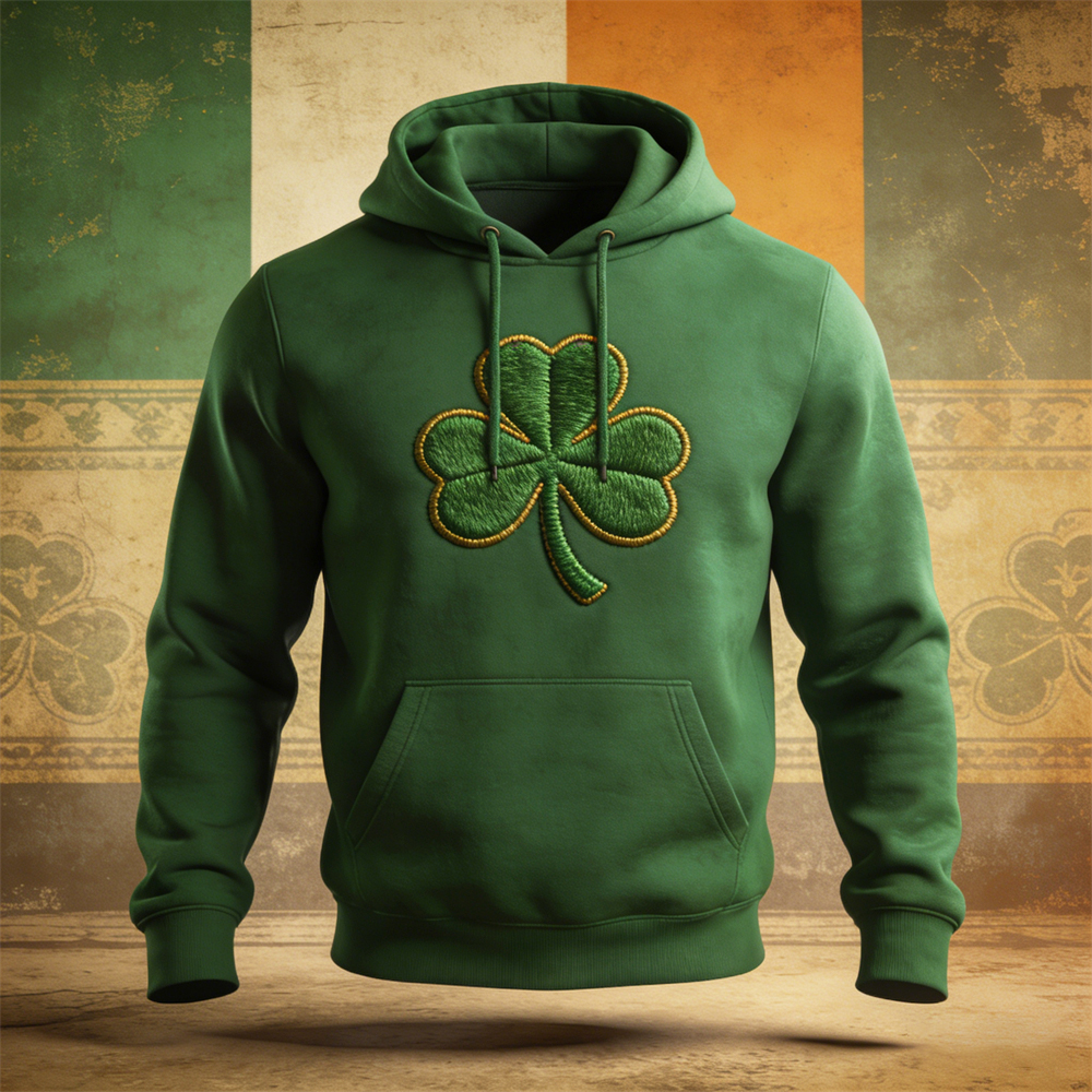 St. Patrick Embroidered Shamrock Pattern Men's Hooded Sweatshirt