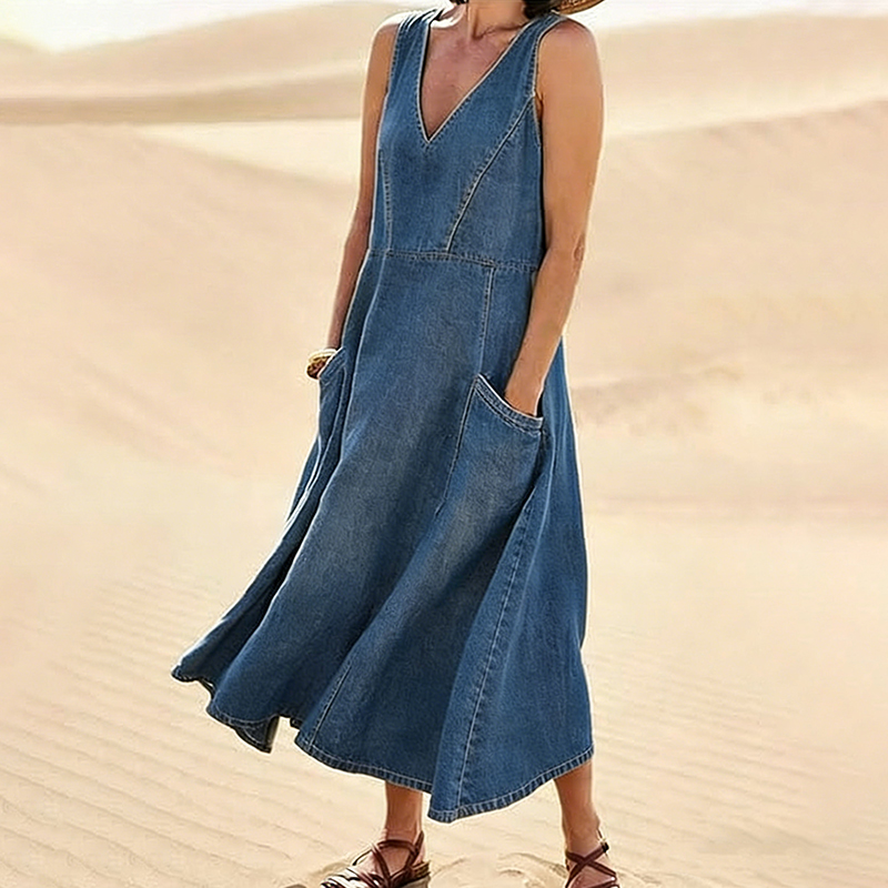 Women's Solid Color Geometric Casual Sleeveless V-neck Dress