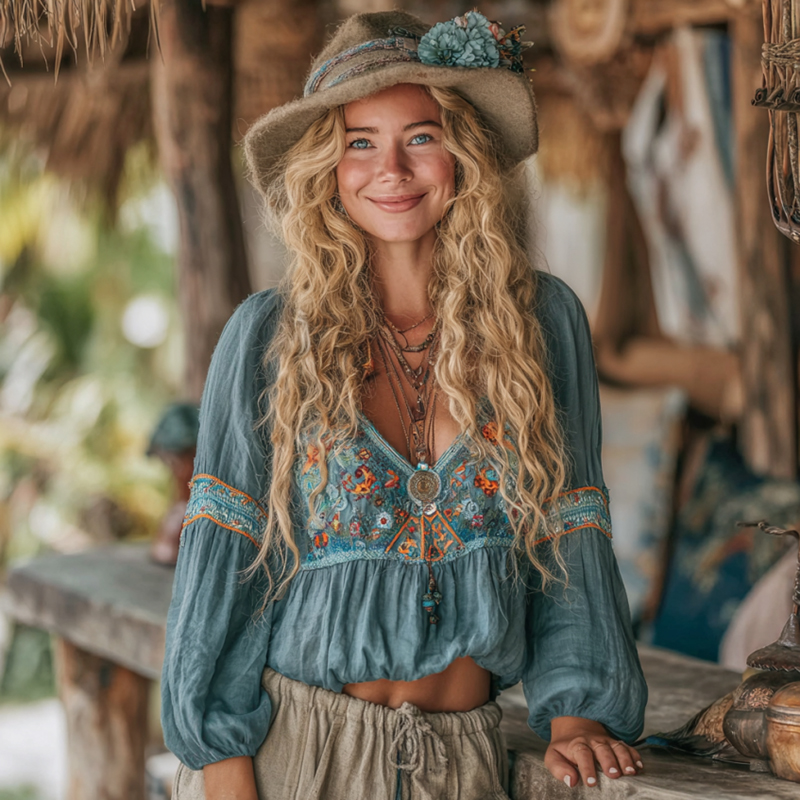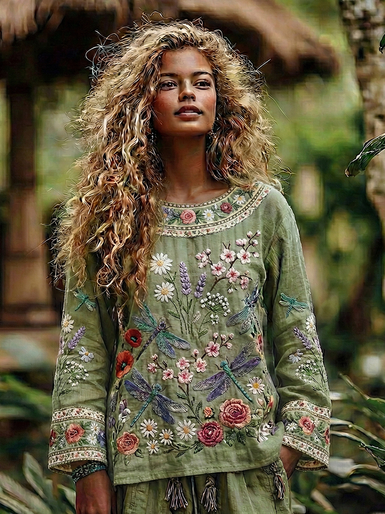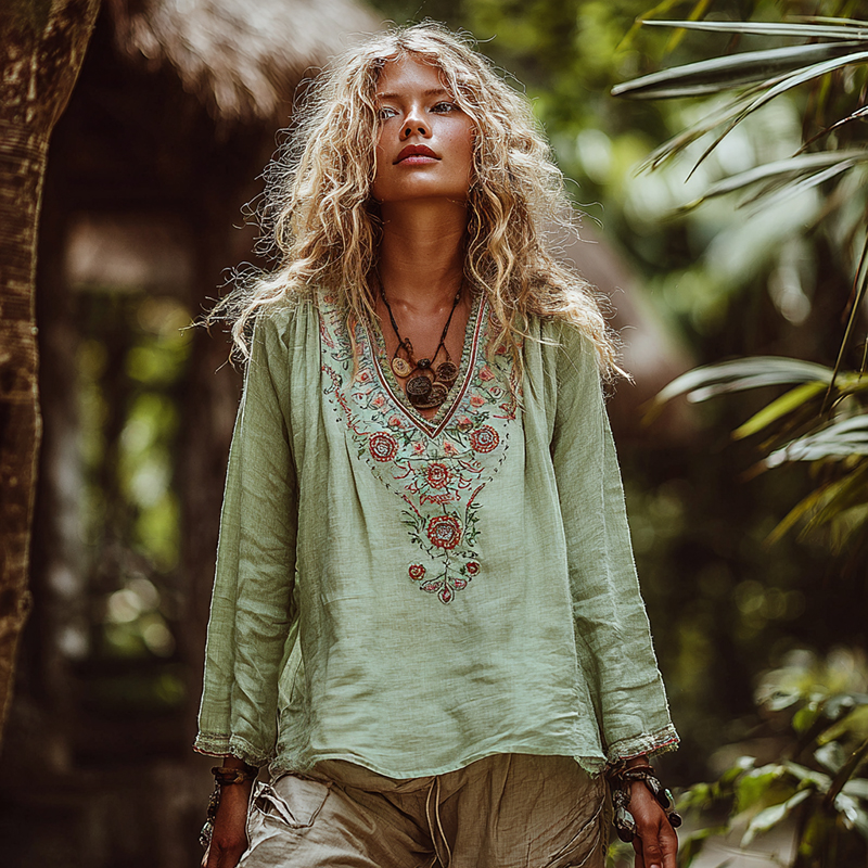 Women's Vintage Bohemian Embroidered Casual Linen Top