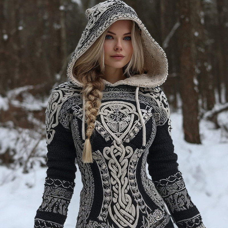 Women's Vintage Viking Rune Style Knit Hoodie