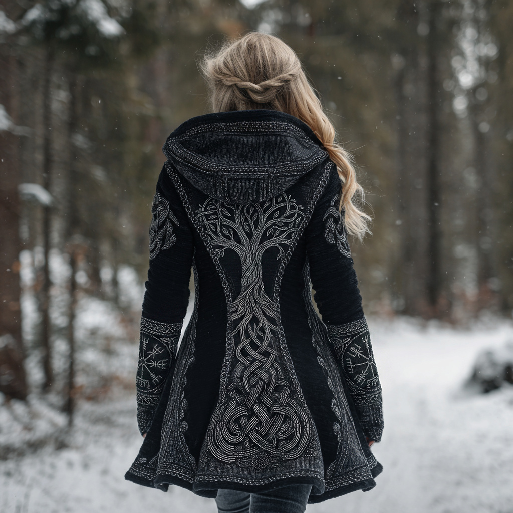 Women's Vintage Viking Celtic Tree Of Life Cozy Zipper Hooded Jacket