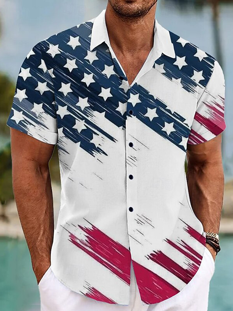 Men's Us Flag Patriotic 1776 Blouse Shirt