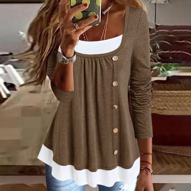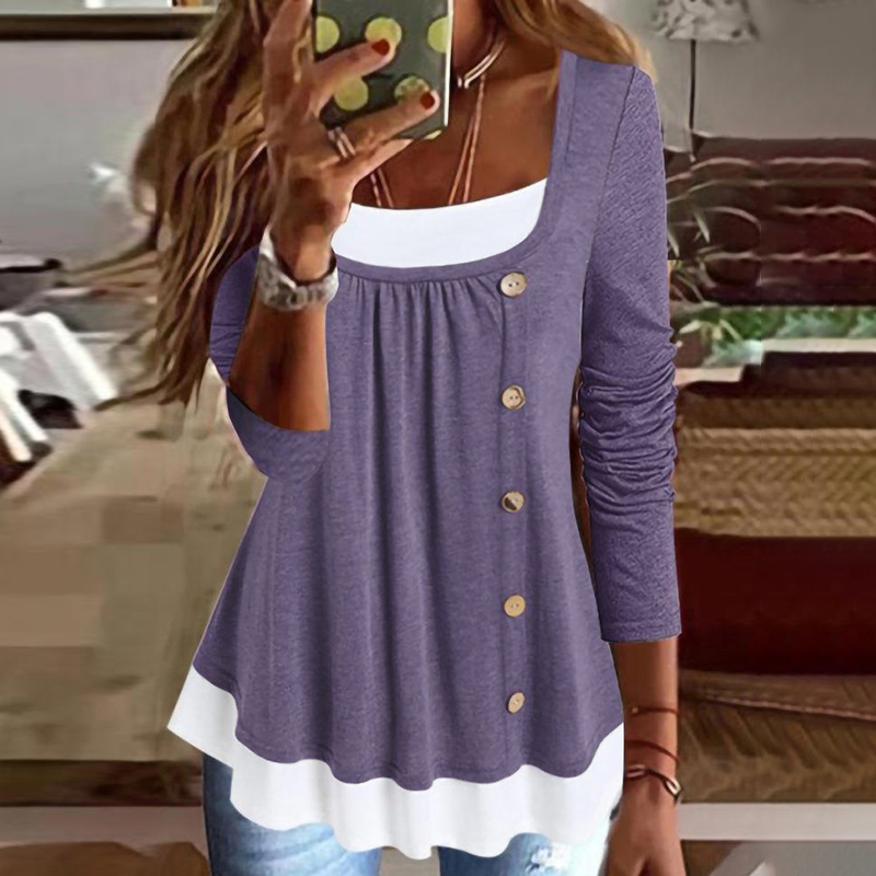 Solid Color Patchwork Casual T-Shirt