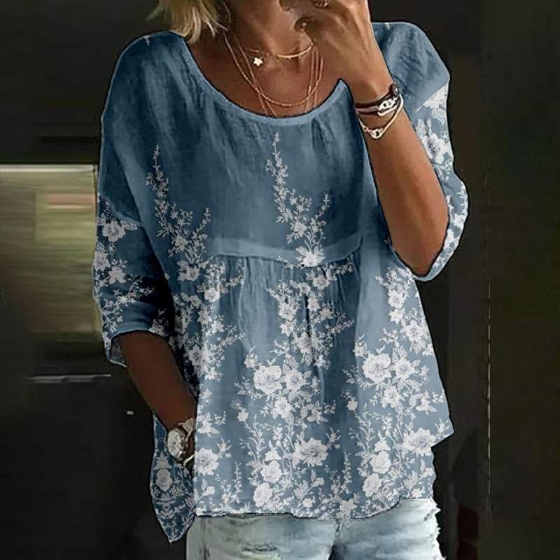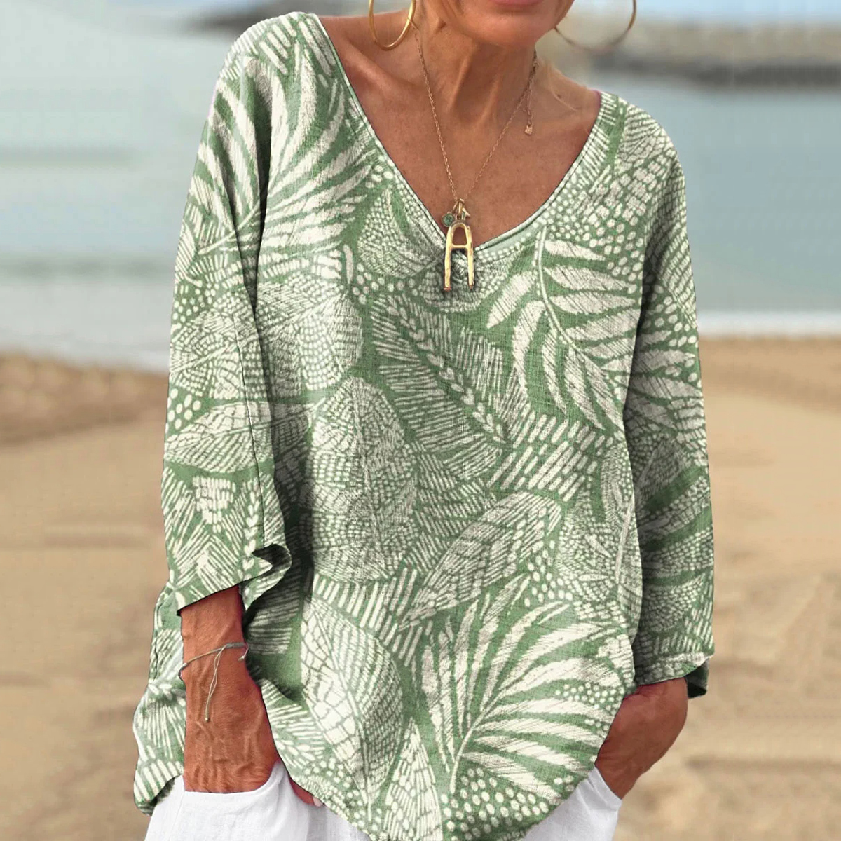 Vintage Floral V-neck Loose Linen Blend T-shirt