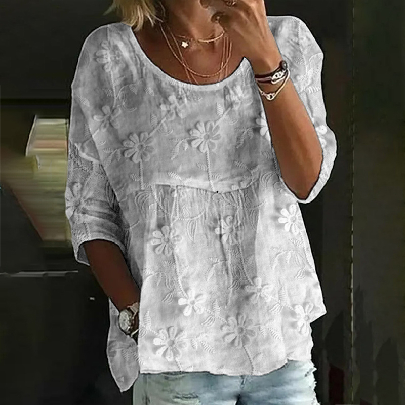 Vintage Embroidered Floral V-neck Linen Blend Blouse