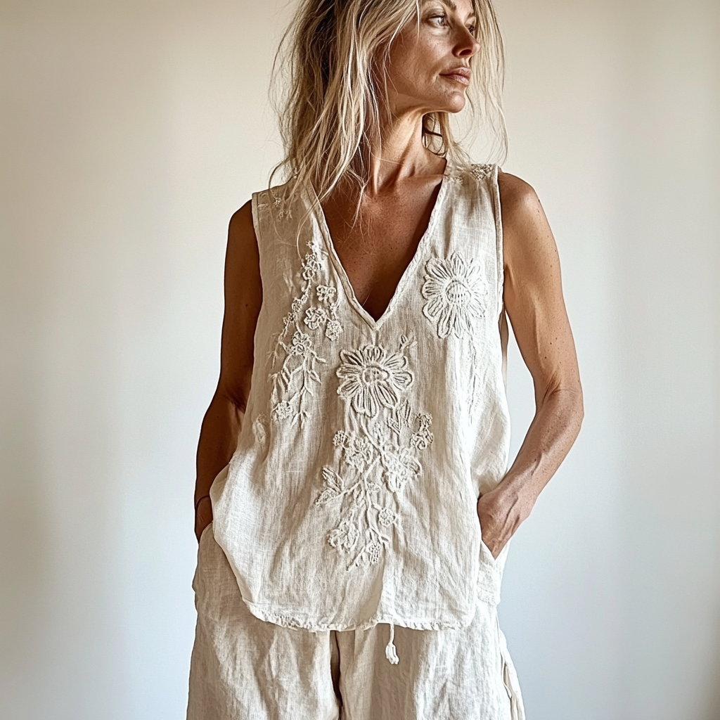 Women's Vintage Floral Pattern Cotton And Linen Vest