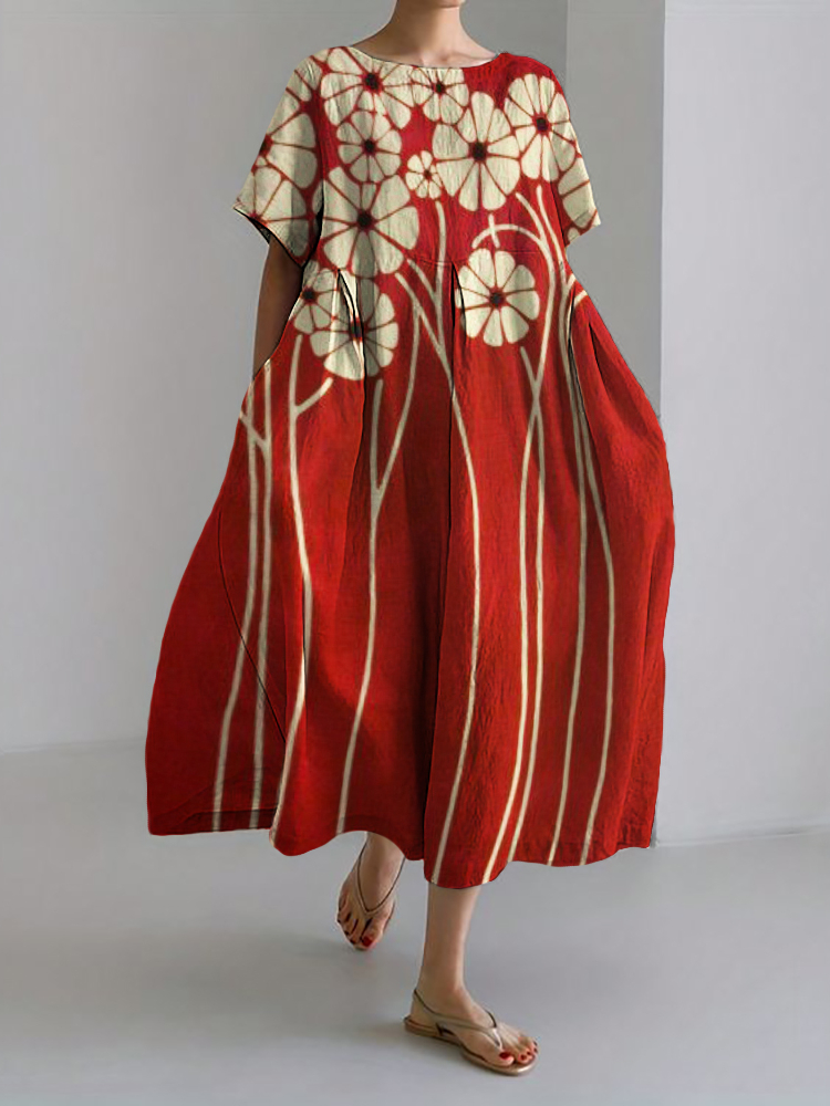 Classy Flowers Japanese Art Linen Blend Maxi Dress