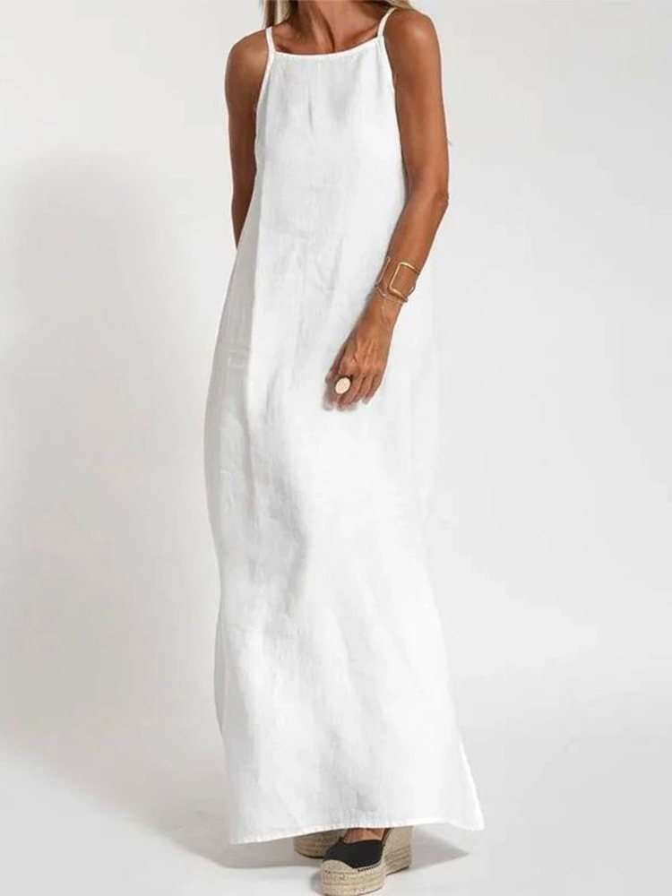 Women's White Exra Large Hem Cotton Sleeveless Spring Maxi Dress